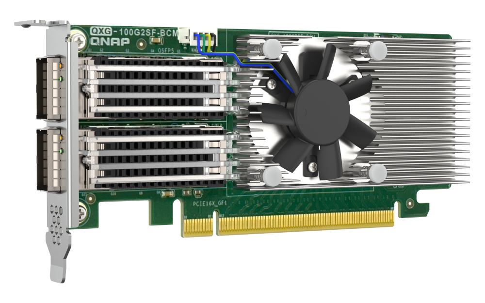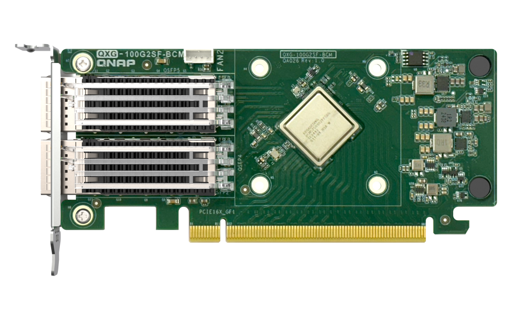 • A QNAP BEMUTATJA A QXG-100G2SF-BCM-ET, EGY KÉTPORTOS, 100 GBE-S HÁLÓZATI BŐVÍTŐKÁRTYÁT